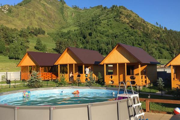 отель в горах алтай. к услугам гостей терраса помещение для хранения лыж сезонный открытый бассейн и сад. в числе прочих удобств. отель и ресторан spa бани. уютная зона отдыха веники травяной чай.
