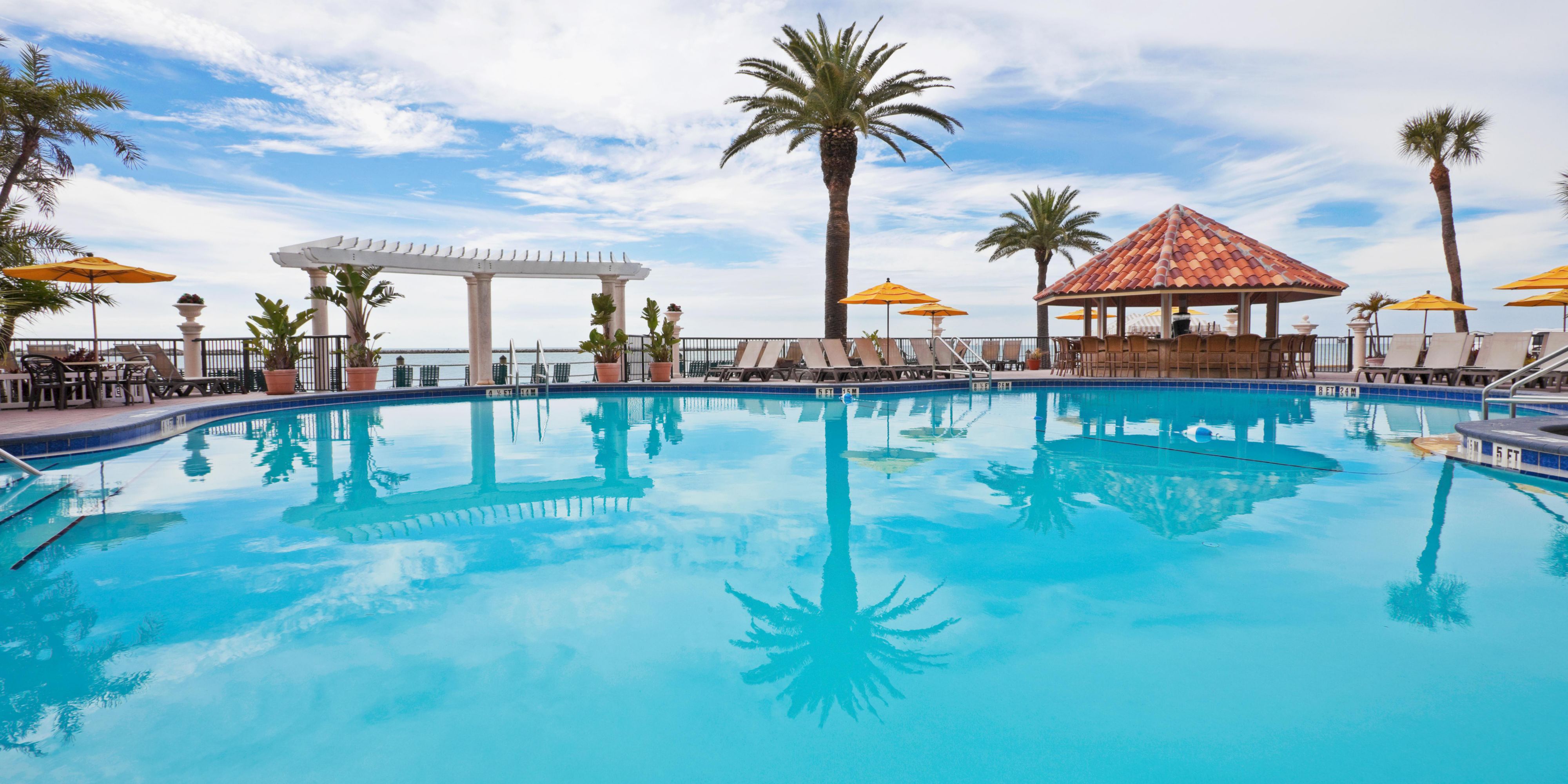 Amenities such as flat screen lcd hd televisions free wi fi and outdoor heated pool with ocean views are sure to please. Guests enjoy the beach locale. A fitness centre games room and shops are on site at at holiday inn hotel suites clearwater beach south harbourside for added convenience. Holiday inn hotel suites clearwater beach clearwater.